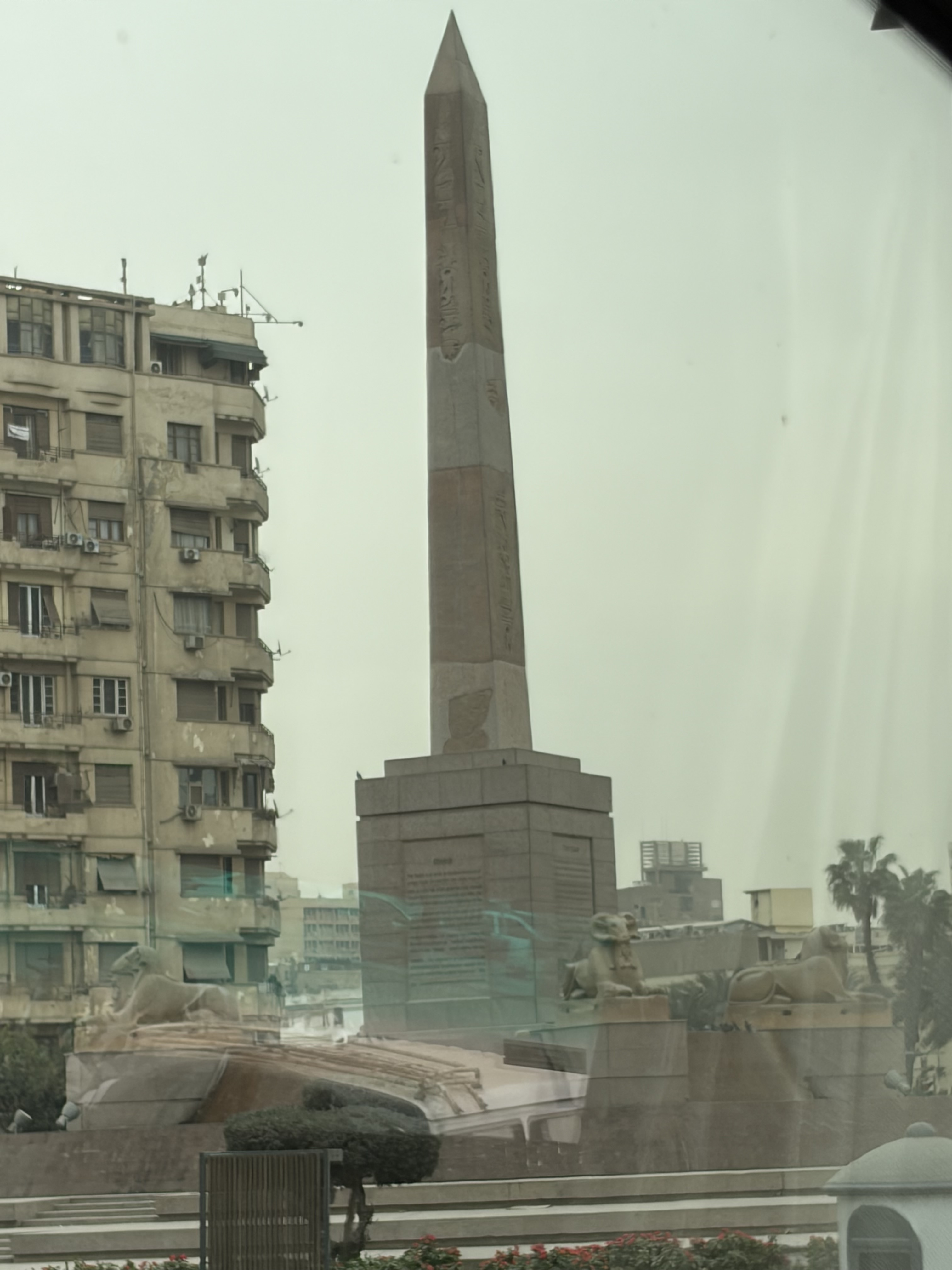 背後に見えている建物は、広場に面したアパートやオフィスビルです。この広場は、エジプト博物館のすぐ近くに位置しています。