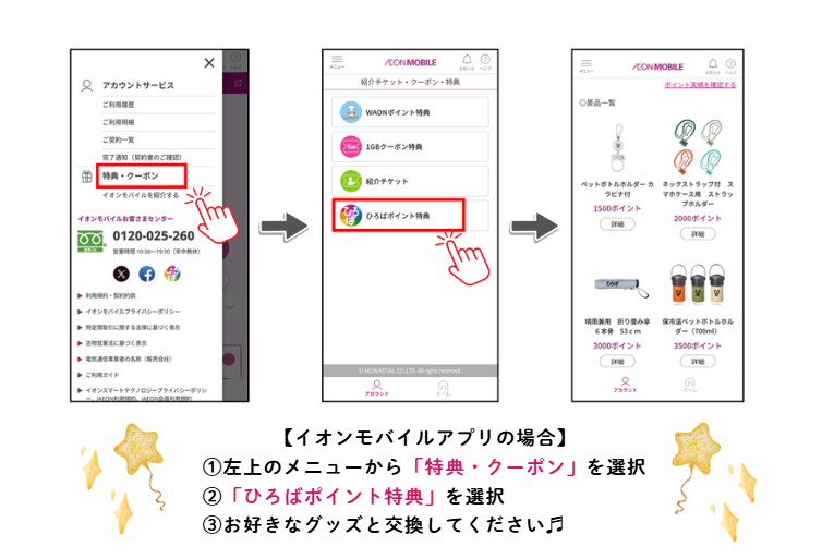 グッズ交換は、イオンモバイルのマイページ(ウェブorアプリ)からご利用いただけます。