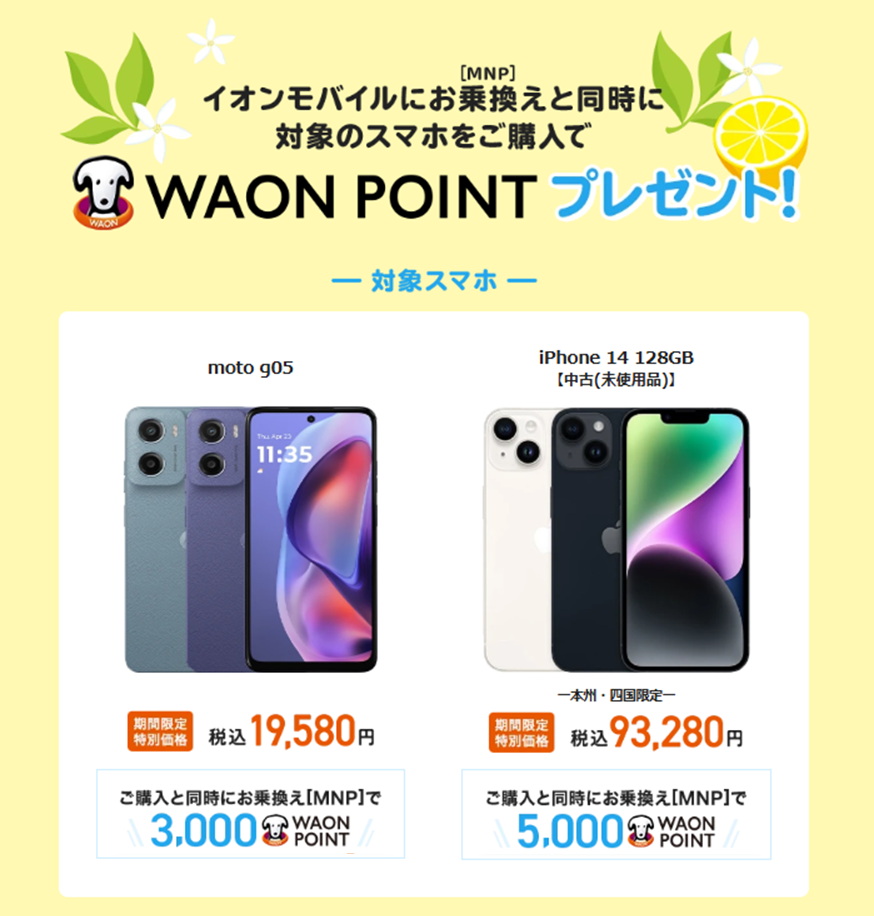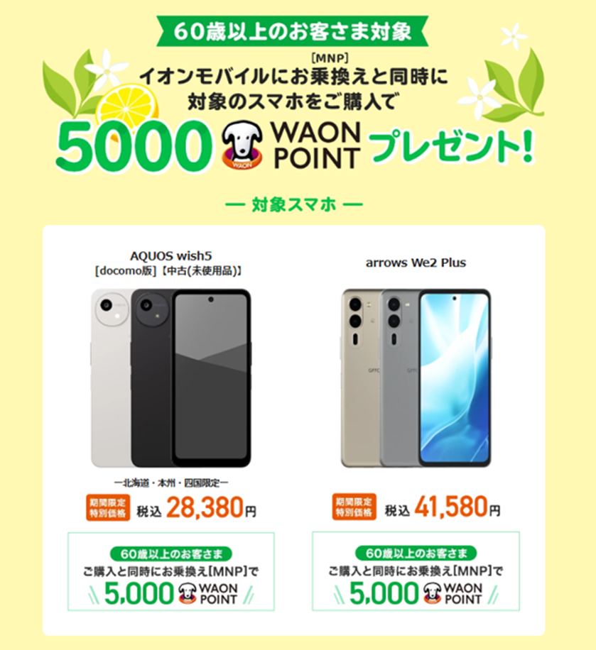 イオンモバイルをご利用中のお客さま限定で、機種変更をされた方に