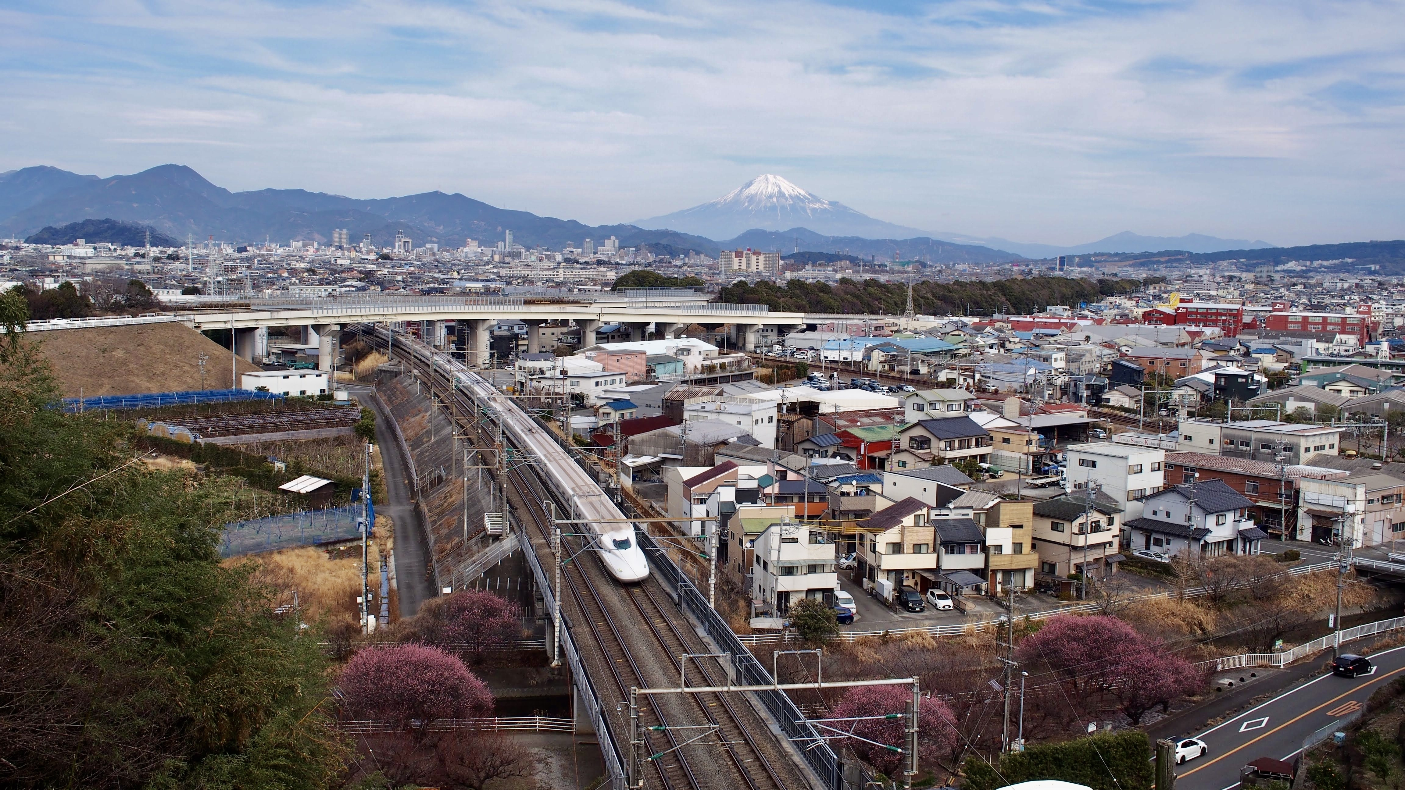 富士山と一緒に新幹線を上から覗ける良いアングルですね!