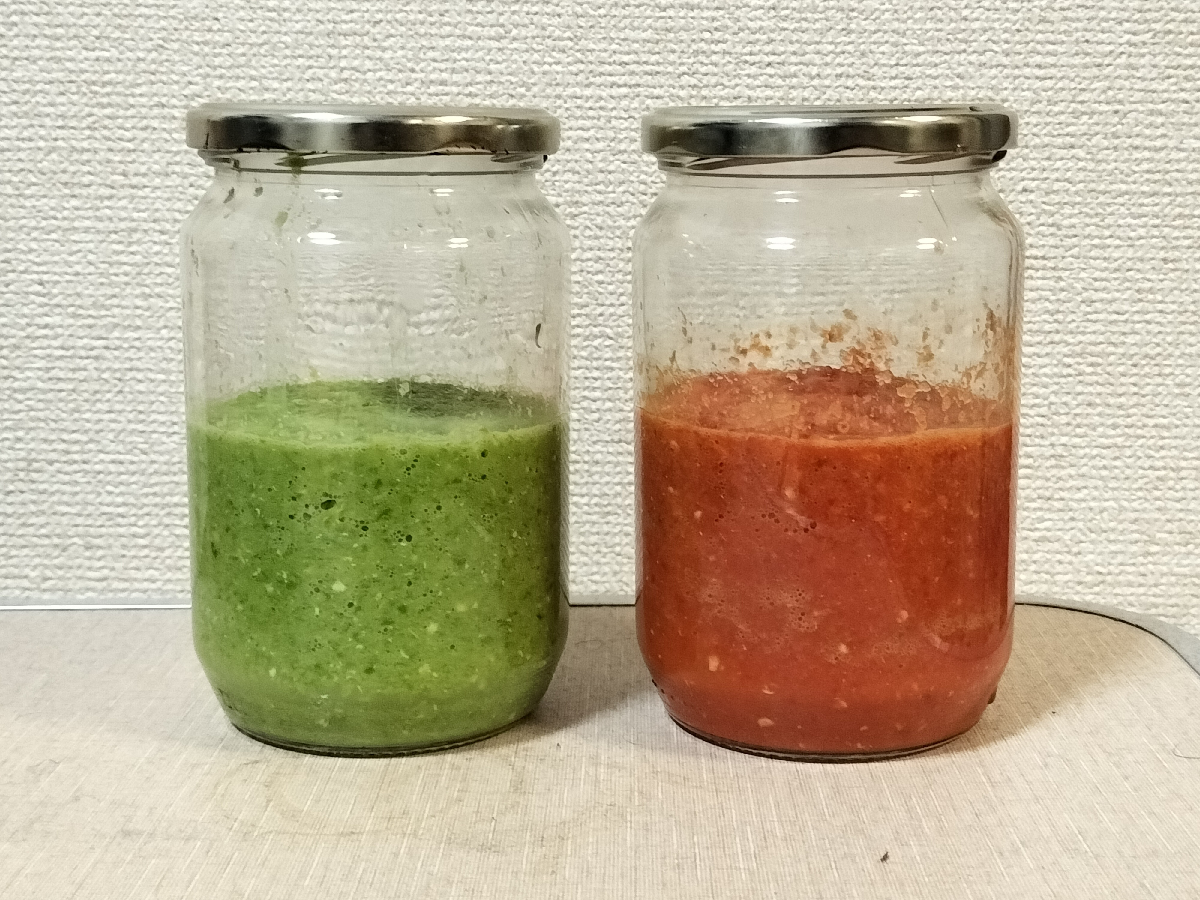 これを、赤と緑で2個作りました。 あとは1ヶ月くらい熟成させればいいそうです。