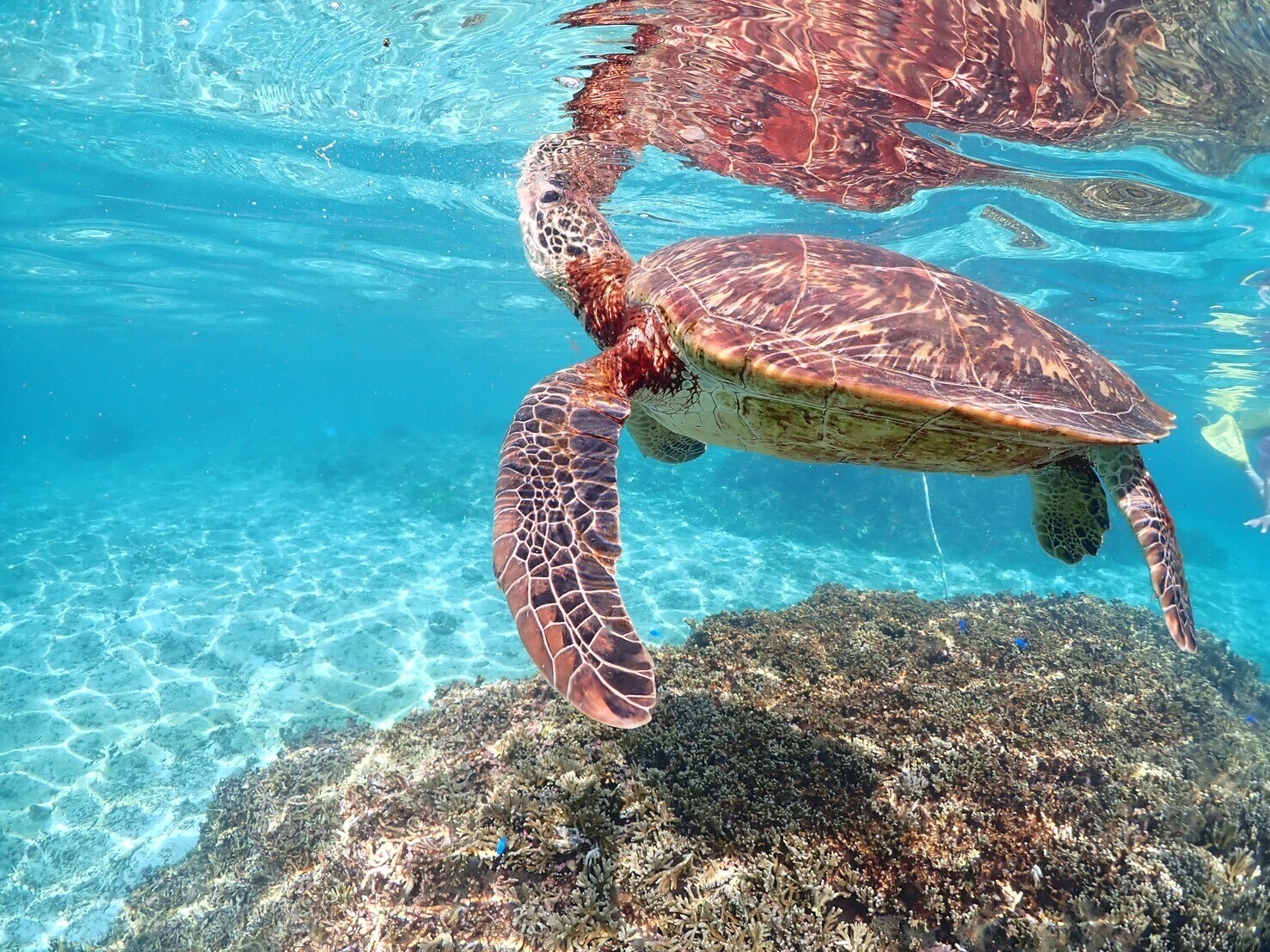 上の写真はウミガメが息継ぎをするため水面に顔を出す瞬間です🐢