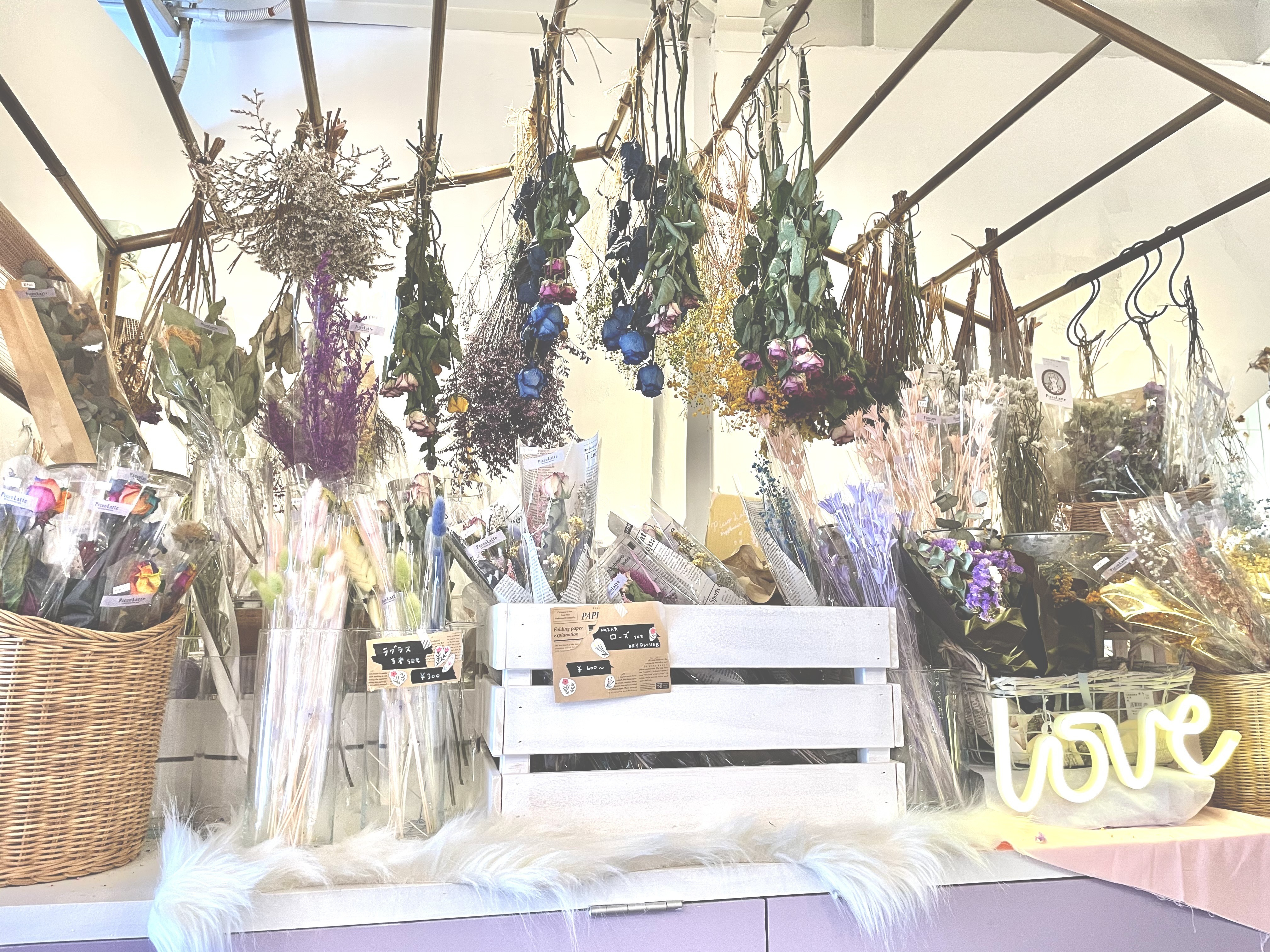 ミニサイズのドライフラワーをテーブルに飾ってくださり、