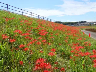 半田市・矢勝川の彼岸花 まだ満開?とは行きませんが…愛知県半田市のごんぎつねで有名な半田市までお散歩に。もうしばらくすると堤防一面が真っ赤になるのでしょうね。近くにある新美南吉記念館もオススメです。