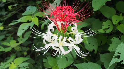 裏の土手に咲く彼岸花② 白い彼岸花を見付けました。ようやく秋めいて来ました。
