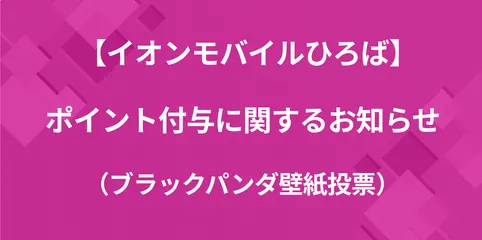 ひろとものみなさま日頃よりイオンモバイルひろばをご利用いただき、ありがとうございます。このたび「ブラックパンダ壁紙投票」におきまして、一部の方へのポイント付与に遅延が生じ、ご迷惑をおかけしましたこと、心よりお詫び申し上げます。事務局側の手続きに不備があり、本来付与されるべきポイントの反映が遅れており