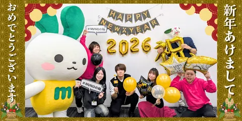 ひろとものみなさまへ新年のご挨拶 ひろとものみなさまあけましておめでとうございます🎍✨ 年始は、写真のとおり mineoさん と一緒に「#MVNOの輪」を感じながら、にぎやかにスタートです☺️さっき~とゆきねぇは・・イオンモバイルカラーのお衣装🤭そして気になるもうひとりのイオンモバイルカラーの正体は・・いつかのお楽しみです