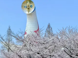 太陽の塔と桜 今日はちょっと足を伸ばして大阪万博記念公園⛲️まで✨たくさんの方が来園されていて花見🌸を楽しんでいました😊
