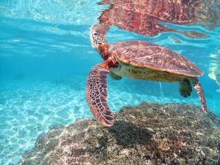 NEW ウミガメ こんにちは!ちた@ひろば盛り上げ隊です😊 先日、友人と旅行へ行った際、旅行先でウミガメと一緒に泳いできました! 上の写真はウミガメが息継ぎをするため水面に顔を出す瞬間です🐢 他にもいろんな海へ出向き、たくさんリフレッシュすることができました✨ また機会があれば